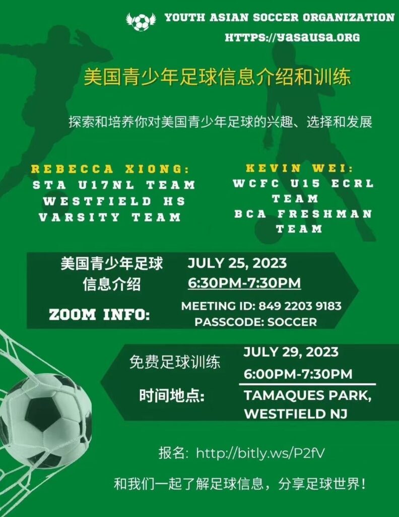 Free Soccer education and training to youth (July, 2023): YASA members held their first free in-person training session in Westfield, NJ, welcoming local youth for an engaging introduction to the fundamental soccer knowledge and skills. The event marked a strong and promising start to YASA’s mission of supporting youth development through soccer.